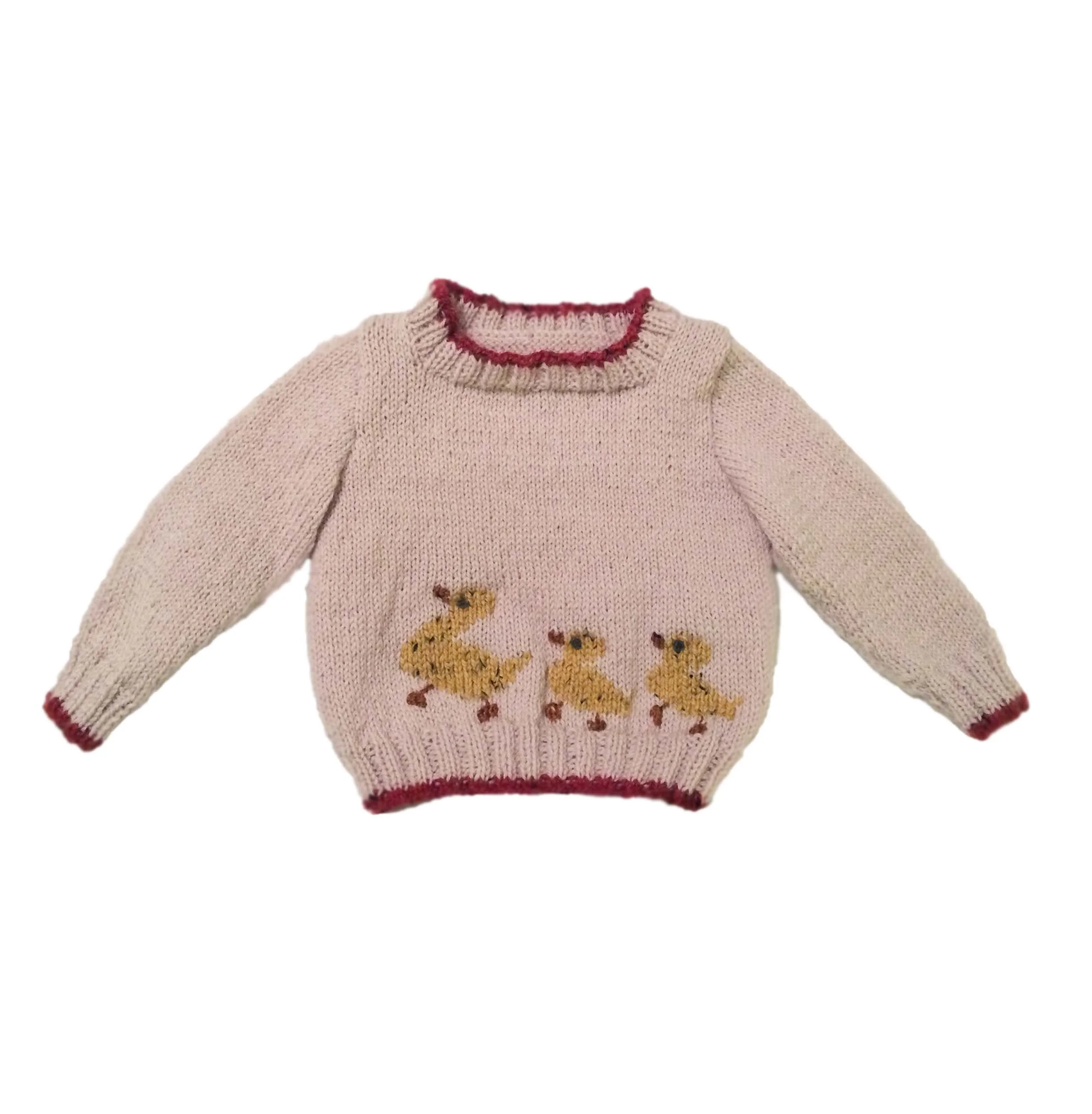 Learn the basics of sweater knitting while creating an adorable baby sweater. The duckling motif is added after the sweater is put together using a technique known as duplicate stitching.